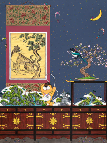 즉 옛 그림에 내포된 대상의 상징과 현대인이 알고 있는 상징의 내용이 같지 않기에 옛 그림을 현대인이 이해하기 쉽지 않다. 그렇다면 '옛 그림의 내포된 상징을 현대인이 알기 쉬운 대상으로 전환하면, 흥미로운 이야기를 전할 수 있지 않을까?' 이러한 궁금증은 그림 속 그림의 시작이 되었다.